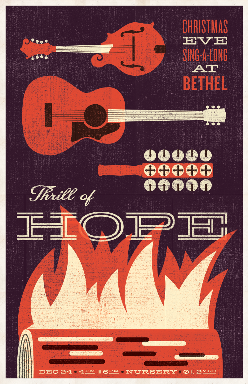A poster I designed for a Christmas Eve sing-a-long service. I made it look letterpress-ish.